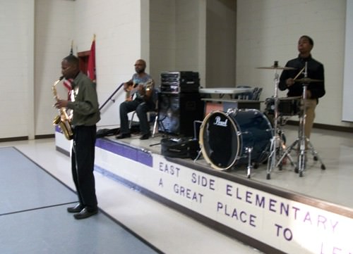 Don Sims, the HCS director of AAA, and Katherine Lester, from East Side Intermediate, would like to thank everyone who visited East Side during November. On November 6, the Brownsville Fire Department brought the rescue truck, then the Haywood High School Tutors came by. On November 14, Mr. Dominique Bond and friends played the saxophone as well as drums and provided a mini concert for AAA students. On November 20, Ms. Christine Northern Jones discussed Fitness, and on November 21, Mrs. Della Ligon from First South Bank talked to the students about personal finances.