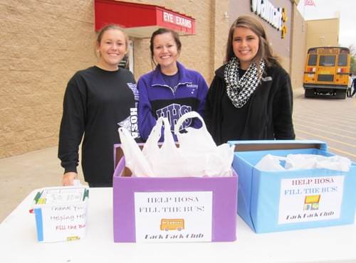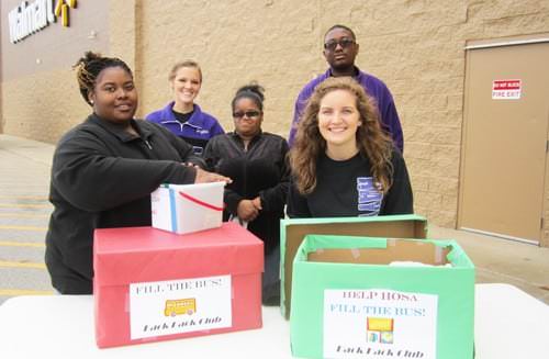 Health Occupation Students of America (HOSA) recently held a “Fill the Bus” food and donations collection to help children who receive weekly food bags on Fridays to help them have food to eat over the weekend. This is part of HOSA members’ class project on child hunger in the United States. They have also made radio public service announcements and are making a video to educate the public about child hunger in the United States.
