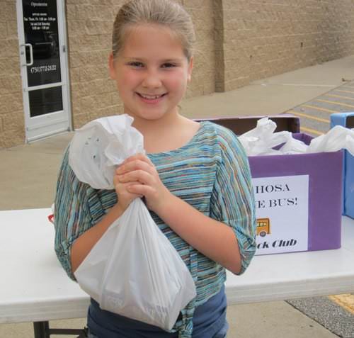 Along with receiving the food and money, the HOSA students help with the packing of the bags into large tubs that are delivered each Thursday afternoon to the schools for distribution on Fridays. They are involved in every level of the Backpack Food Program and have become very knowledgeable about the needs of children in Haywood County.