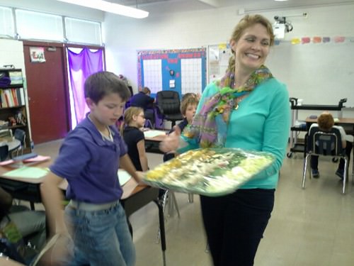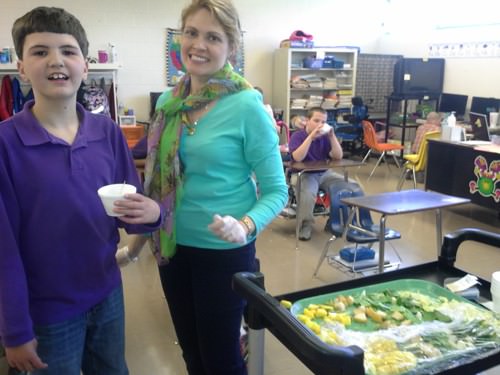 Karen D. Jones, also a UT Extension agent, also helped prepare the food. Children sampled foods like bok choi, napa cabbage, zuchinni, radishes, jicama, spinach, Asian pears, pineapple, kiwi, and mangos. Amazingly, the students tried almost all the foods they hadn’t eaten before, and even more amazing was the fact that they actually liked many of the things they ate! So, parents, if your kids come home asking you to buy food you’ve never heard of, it’s okay … you can buy it … it’s good!