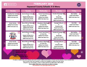 We operate six kitchens within Haywood County, offering breakfast and lunch on a daily basis. Each kitchen is staffed with a Cafeteria Manager, Assistant and cafeteria workers. All food is prepared on site at each school. We have a staff of 40 employees serving on average, over 3,200 meals a day, approximately 576,000 meals a year.