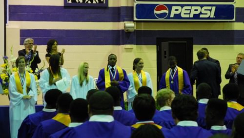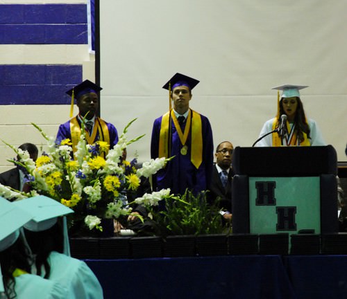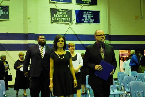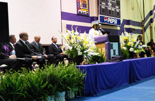 Joining Dr. Pyron on the dais were HHS Vice and Assistant Principals Michelle Tillman and Tim Seymour; Superintendent of Schools Teresa Russell; Board of Education members Harold Garrett, Robbie King, Pearlie Hess and Allen Currie; Director of Career and Technical Education Pam Diebold; Director of the Reach Academy Drayton Hawkins; Brownsville Mayor Jo Matherne; Haywood County Mayor Franklin Smith; and Stanton Mayor Allen Sterbinsky.