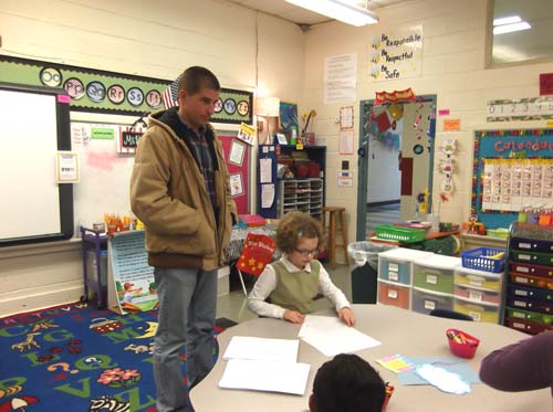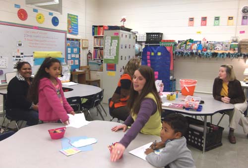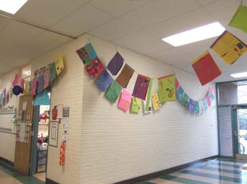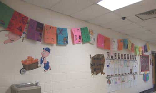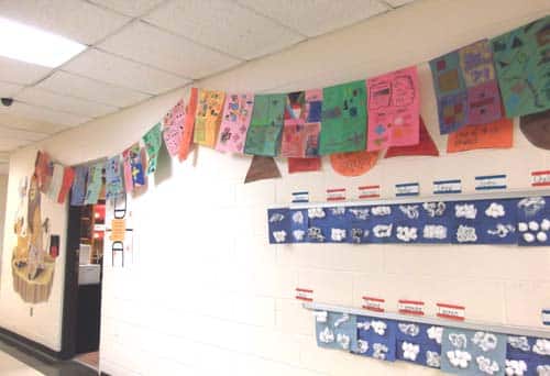 Students made contributions to Math Night, using their learned skills to enhance the evening with family and friends. Third graders in Art class made the banners hanging in the hallway. Each student selected one math symbol, a pattern, word, and shape to highlight on his or her banner. “We have enjoyed incorporating the Common Core principles into our Art lessons,” said Art teacher Mary Marcantel. First-grade students wrote and illustrated a story with an imaginary component to include fantasy writing. Second-grade students included their knowledge of social studies to create celebration pictures showing their classmates together.