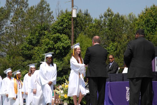 On Friday night, the seniors gathered in the HHS gymnasium for the graduation awards ceremony. Class Valedictorians are Amelia Davis, Sarah Lewis, Morgan Marlar, Molly McAdams and Rebecca Pearson, who all earned a 4.0 GPA. The rest of the Top Ten are Kenya Ector (#6), Emily Pilant (#7), Rashad Mann (#8), and Katora Holmes and Hannah Roberts, who tied for ninth place.