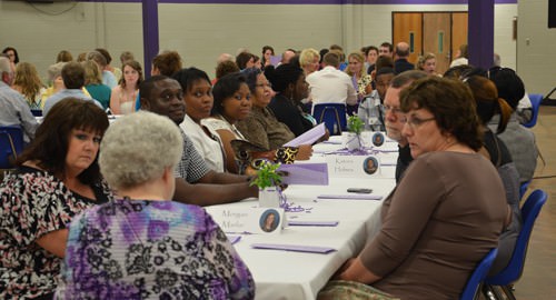 Haywood High School seniors who are candidates for the Distinguished Scholar Diploma were honored at a banquet in the school cafeteria on May 7. Participating in the program were HHS Principal Dr. Jerry Pyron, Class of 2013 President Rashad Mann, Vice Principal Michelle Tillman, HHS teachers Linda Baxter and librarian Julie Dahlhauser.