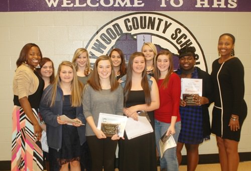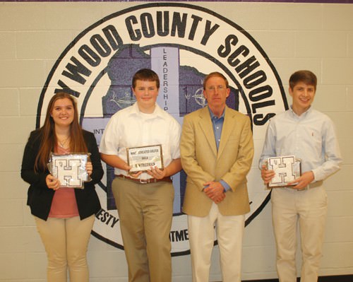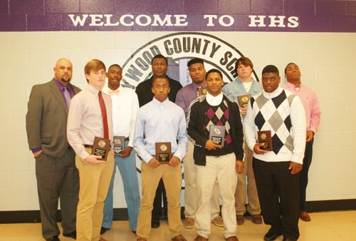 The Haywood High School 2014 Fall Sports Banquet was held Monday, November 24, in the school cafeteria. Hosting the event were PEP (Parents and Educators for Progress) and the HHS Athletic Department, under the direction of Assistant Principal and Athletic Director Tim Seymour. The HHS Air Force JROTC Color Guard presented the colors, and Martha Lyle Ford spoke for the PEP organization. She gave special recognition for speical contributions, including Mallory Blurton of Sports Plus, who serves as Athletic Trainer for the HHS sports teams.