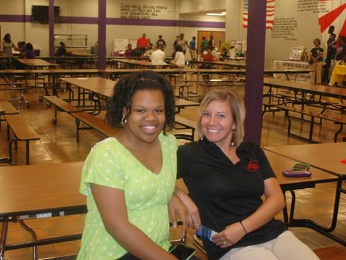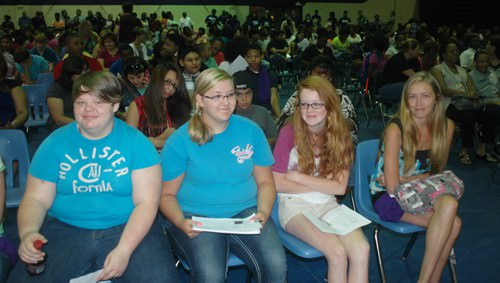 Haywood High School faculty and staff came together Friday to welcome members of the Class of 2018. Most of the freshmen, some with family members, attended the day that began at 9 a.m. and ended at 3:30 p.m. Principal Dr. Jerry Pyron welcomed everyone and gave them the schedule for the day. Students, with their homerooms, attended four sessions conducted by teachers on student discipline, the WHHS News show, the dress code and a chat session. They enjoyed a hot dog lunch provided by the Gear-Up program, and afterwards, heard about graduation requirements, Gear-Up and saw the “Tomcat Rhapsody” video presentation. Following this presentation, students toured the buildings. From 2:30 to 3:30, Career and Technical, elective, sports and extra-curricular groups had displays in the cafeteria and talked to students about these activities at HHS.
