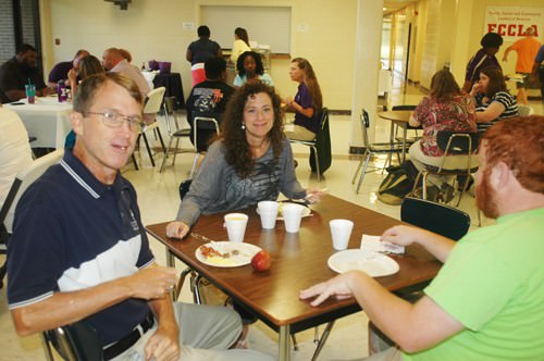 Captain Barry Diebold and Lieutenant Mark Covington, two of Brownsville Police Department’s finest, put their cooking skills to work during In-service week at Haywood High School, when they cooked a huge country breakfast for the administrators, faculty and staff. Captain Diebold is also the husband of HHS Career and Technical Director Pam Diebold.