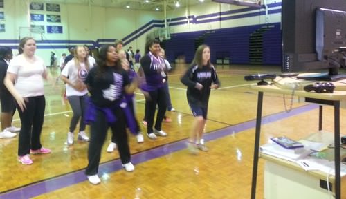 Haywood High students are working on their health … both mind and body! During Mrs. Hamilton’s and Coach Jackson’s PE classes, the students have been learning about what their health will be like in the future if they don’t take care of themselves today, by viewing a series of videos called, “The Weight of the Nation.” They have also been answering questions after viewing the videos. Other days, they have been dancing off the pounds with their new Xbox and dance video games, sponsored by Coordinated School Health. It looks like they are having a lot more fun dancing than thinking about getting old!
