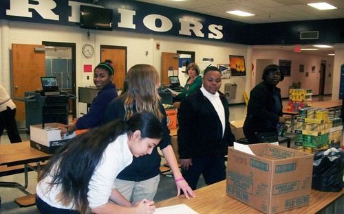 The Haywood Middle School Beta Club sponsored its annual canned food drive for the Salvation Army December 4 – December 16. A total of 1,464 cans were collected and delivered just in time for Christmas! Homeroom classes with the most cans were as follows: Ms. Vonner – 8th grade, Ms. Smith – 7th grade, Ms. Jones – 6th grade, and Ms. Dunning – Honorable Mention. These four classrooms received donut parties for their hard work.