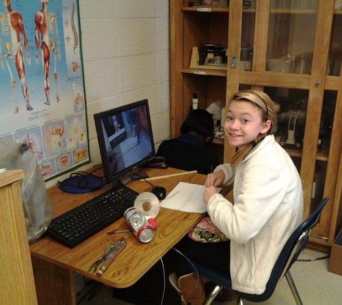The students in Mr. Bontrager’s enrichment class are learning the Engineering Design Method. They have secured plans to build Sterling hot air engines, which operate on the differential pressure between hot and cold air. So far they have learned a number of things that do not work, so they return to the drawing board and try again; each time becoming more precise in their assembly.