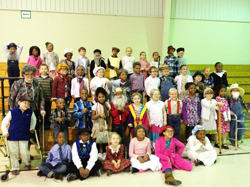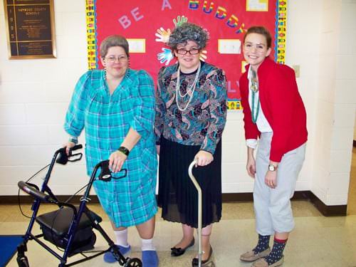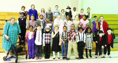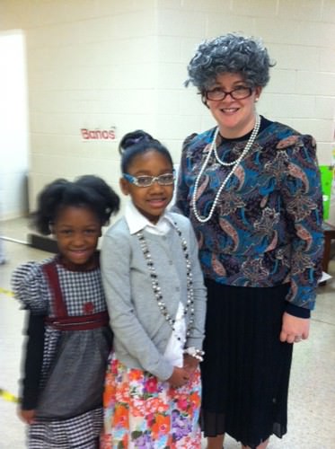 Some of the Haywood Elementary first-grade students were “100 years old” on Friday, January 24, 2014. As part of the Haywood Elementary 100 Day Celebration, students and staff members dressed as they might look at 100 years old, complete with canes, walkers and gray hair. What a wonderful way to celebrate 100 days in school!