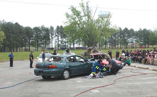 The Haywood High Drama Department students portrayed the victims and the offenders of this crash. Representatives from the Brownsville Fire Department, Haywood County Ambulance Authority, Hospital Wing, Lea and Simmons Funeral Home, Young’s Wrecker Service, Duncan’s Wrecker Service, and Parks and Recreation joined in to make this annual production possible.