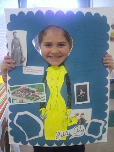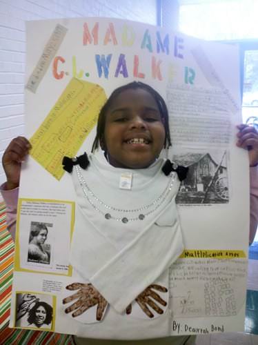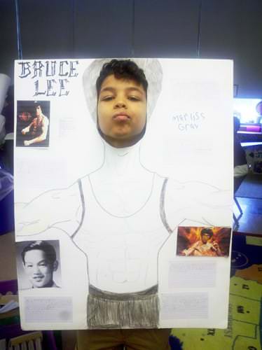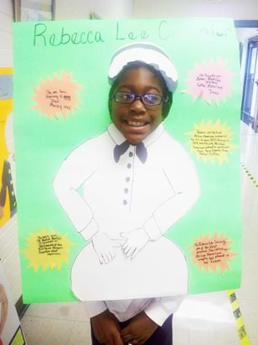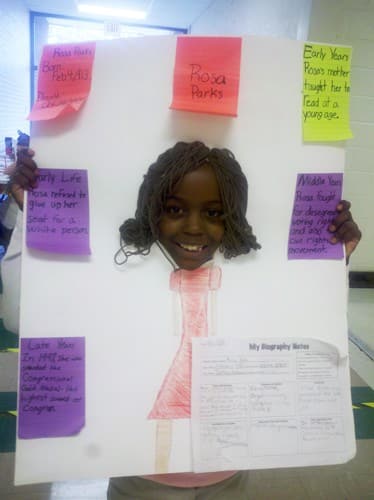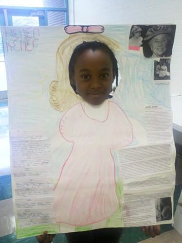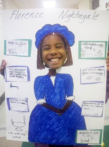Their culminating project consisted of students conducting independent research on someone in history they didn’t know much about by locating and reading informational text and taking notes on a graphic organizer. They used their listening, speaking, and writing skills to present their information to an audience of their peers and family members. In addition, the students had the opportunity to be creative by enhancing their poster display with key details about the person’s major contributions to society and education.