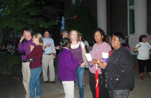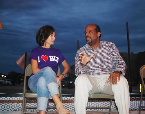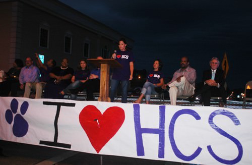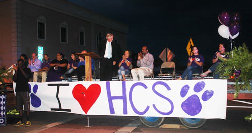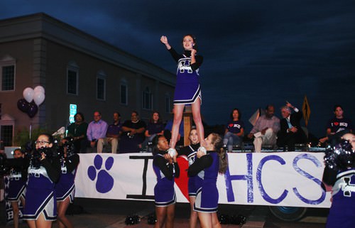 Members of the PEP (Parents and Educators for Progress in Haywood County Schools) were the hosts for a community-wide pep rally on the court square in downtown Brownsville Thursday, September 18. The square was packed with lots of families and children and supporters who gathered for a few speeches and a thank you for supporting Haywood County Schools. Both HHS and HMS cheerleaders let the crowd in cheers. Joining PEP leaders Abby Nichols and Casey Berry on the stage were Brownsville Mayor Bill Rawls and Haywood County Mayor Franklin Smith, Superintendent of Schools Teresa Russell, and all school principals.