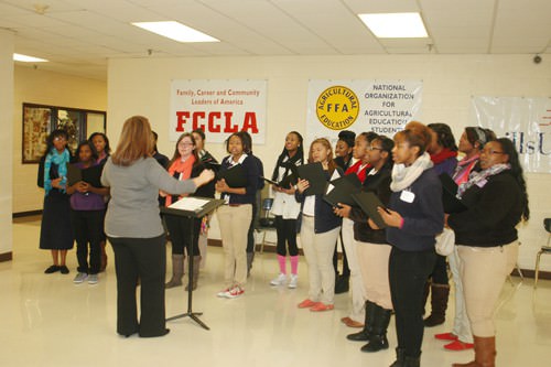 Members of the local Retired Teachers Association enjoyed their annual holiday luncheon on Tuesday, December 2, in the HHS Career and Tech “dining room.” The dining area is in the C & T commons, and preparing and serving the meal were Culinary Arts students of Mrs. Vickie Noles. The menu was chicken and rice, green beans, congealed salad and dessert. The culinary students received special recognition and thanks from the teachers for their meal. It was a delightful holiday celebration with the HHS Women’s Ensemble performing several Christmas songs for the group, under the direction of Choir Director Ashley Jackson. Scheduling the lunch was retired C & T teacher Peggy Haynes.
