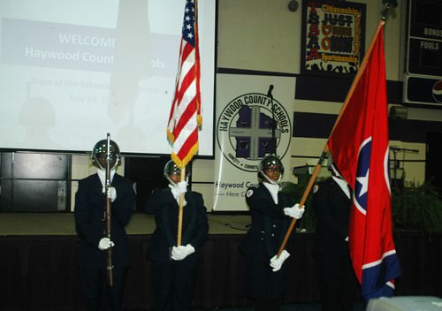 Haywood County Schools held its State of the Schools Celebration on Monday, July 28, at Haywood High School. Members of the HHS Air Force JROTC Drill Team presented the colors, and Mrs. Tanesha Walker, a Haywood Middle School teacher, sang the National Anthem.