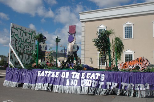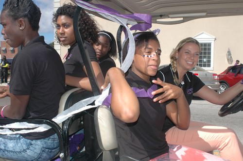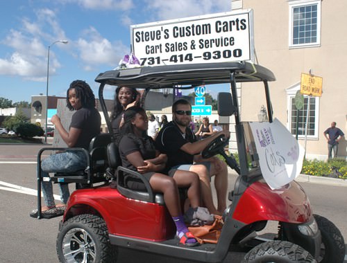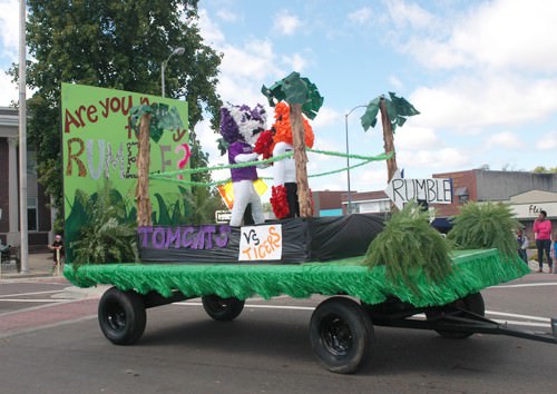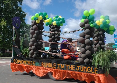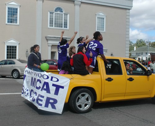 The Haywood High School Tomcats pulled out all the stops to make a “roaring” production of the 2014 Homecoming parade. With close to 60 entries, and participation from the other schools, Main Street was lined with spectators enjoying the floats and other participants for more than an hour. The theme this year was “Rumble in the Jungle,” as Haywood played the Ripley Tigers. The Sophomores won the float contest and the Hall Decoration contest, and the Freshmen won the Powder Puff game and the Spirit award at the Pep Rally.