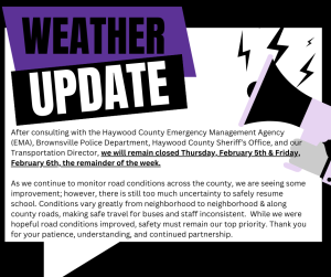 After consulting EMA, Brownsville Police, County Sheriff’s Office, and our Transportation Director, schools will remain closed Thurs & Fri. While roads are improving, there is still too much uncertainty for safe travel. Safety remains our top priority. Thank you. Please stay safe